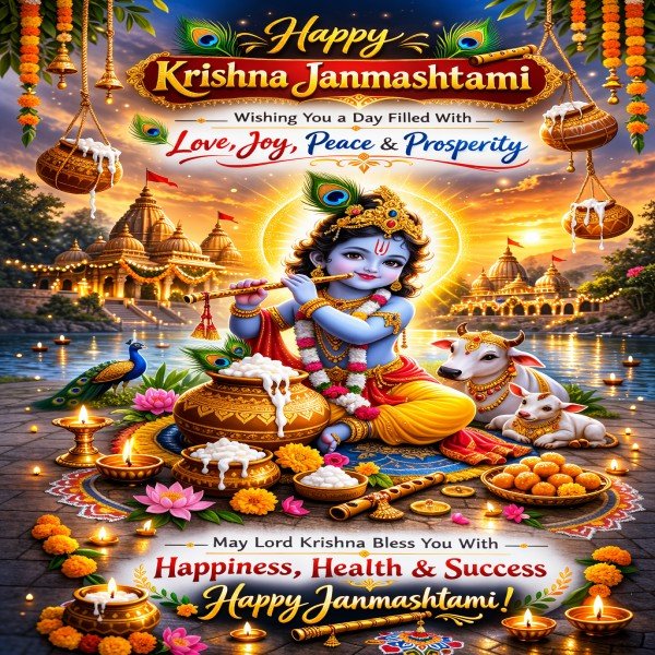 🎉 As we celebrate the birth of Lord Krishna, may your life be filled with happiness, hope, and meaningful blessings.